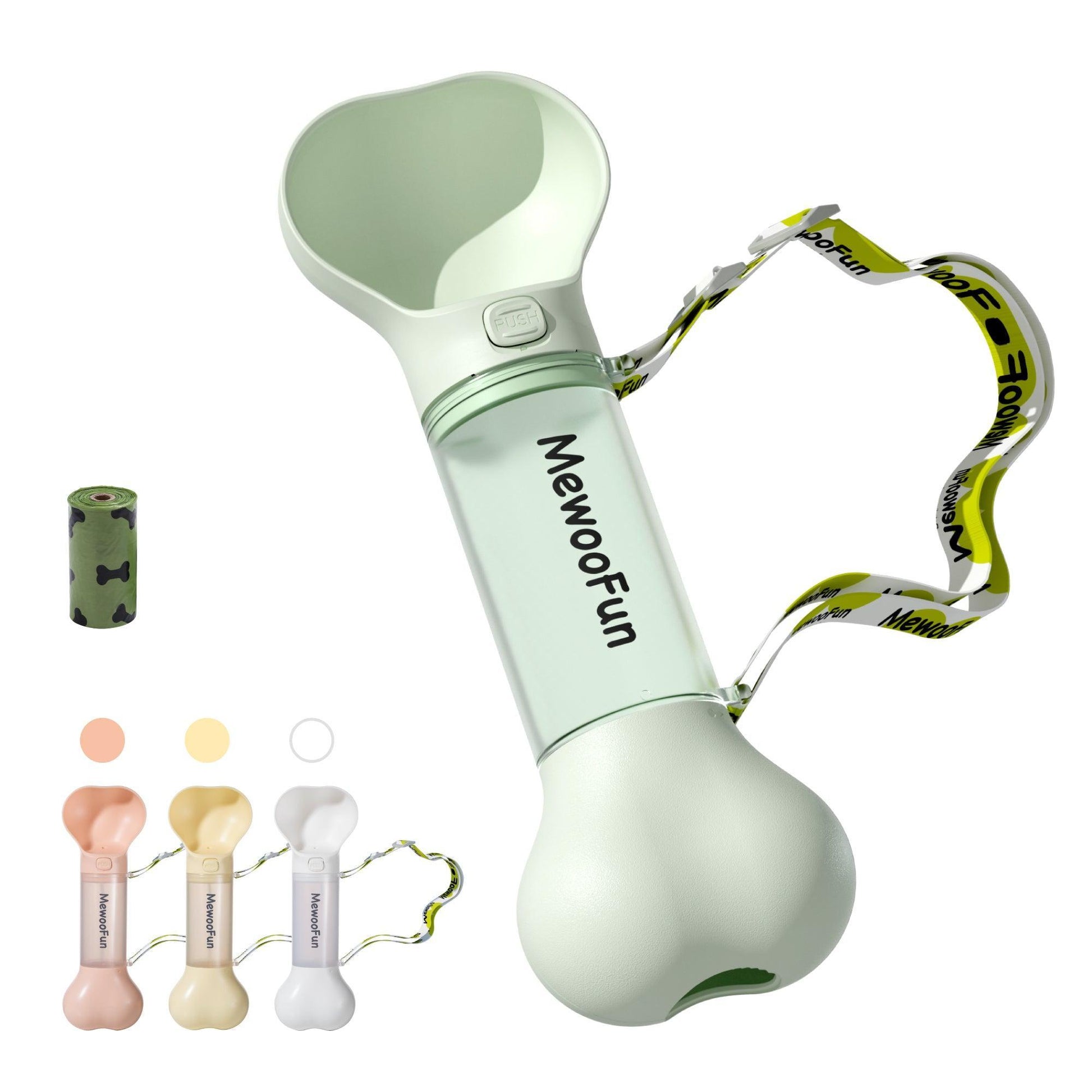Available in four vibrant colors - white, pink, green, and yellow - this dog water bottle is not only practical but also a stylish accessory for your furry friend. Whether you're going for a walk in the park or embarking on a travel adventure, the Mewoofun 2-in-1 Pet Water Bottle is the perfect companion.
