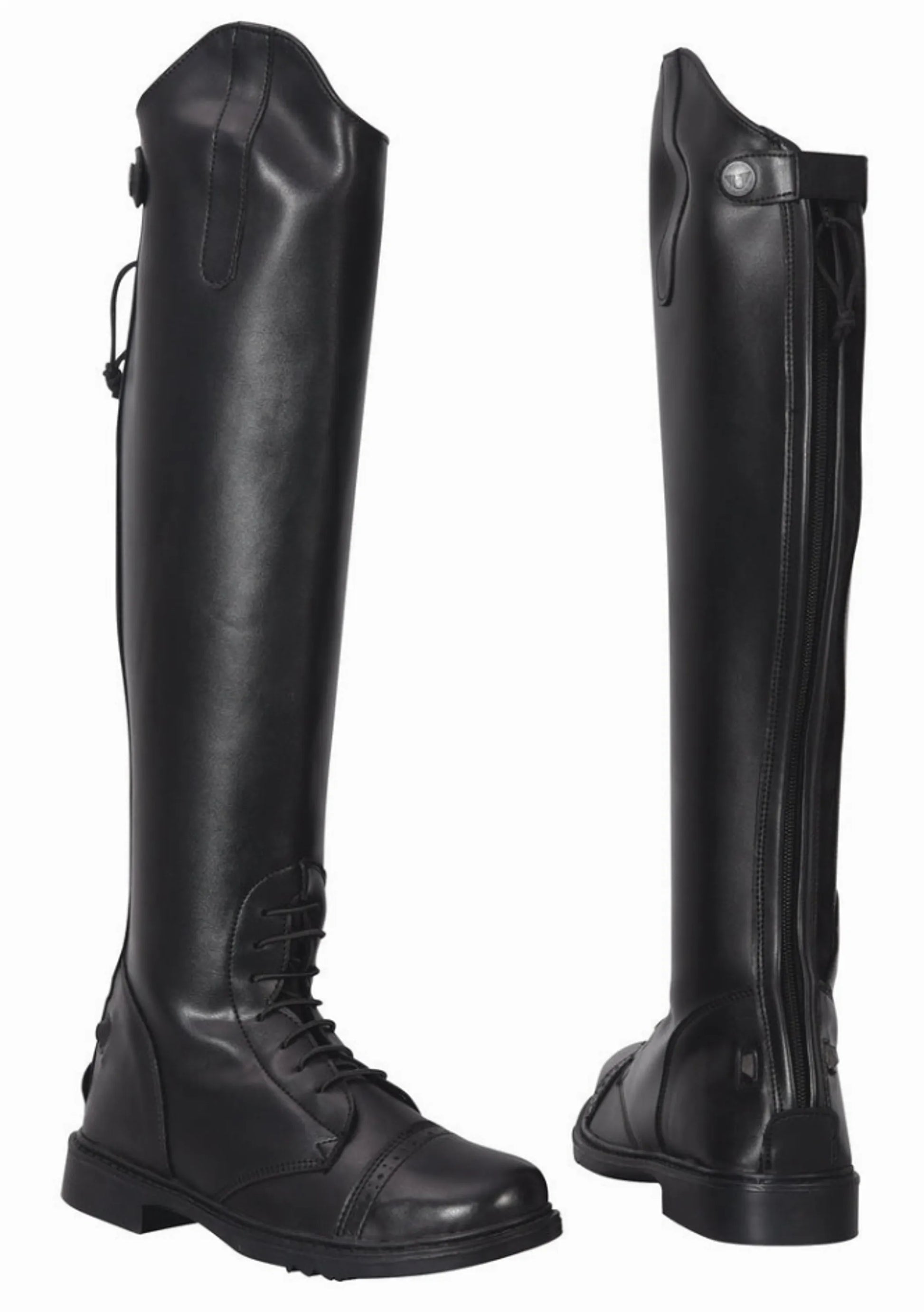 Step into comfort and protection with the TuffRider Women's Synthetic Leather Starter Back Zipper Field Boots, designed specifically for everyday riders who need reliable, affordable footwear for barn work and riding. These versatile field boots combine water-resistant synthetic leather construction with practical features that make them ideal for daily equestrian activities. The convenient back zipper with snap closure ensures quick and easy on/off application, while elastic side gussets provide a customized fit around the ankle and calf. Perfect for schooling, barn chores, riding lessons, and casual riding, these durable boots protect your feet from dirt, moisture, and the rigors of daily barn life without breaking the bank.