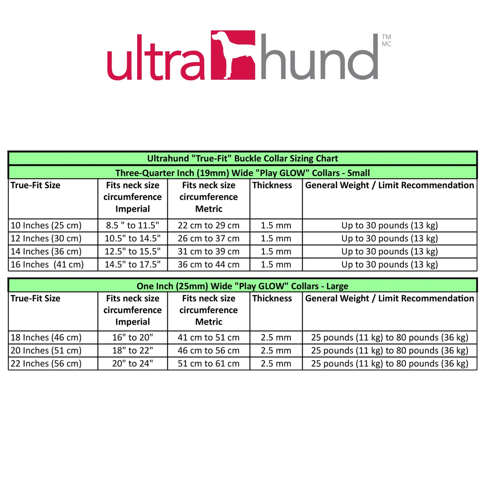 Not all collars are created equally. You never have to choose between fashion and function our stylish glow line of collars are a model of upscale durability. Made for comfort, style, and safety, this line delivers the perfect balance. Strong Durable Water-proof Hygienic No-Smell Glows in the dark Stainless Steel Roller Buckle Glow Collar - 18" True-Fit