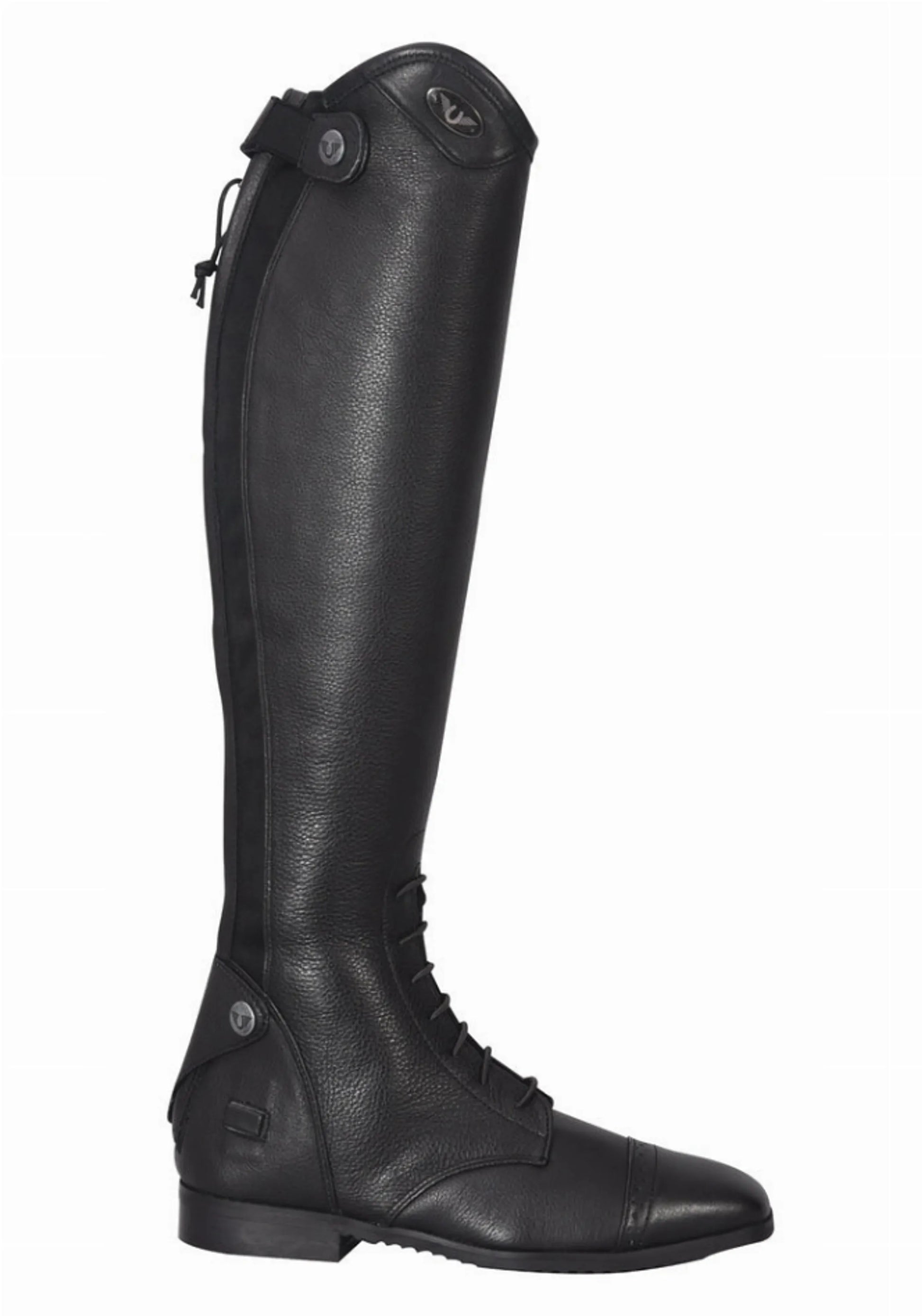 TuffRider Ladies Regal X-Tall Field Boots are classic equestrian field boots crafted with ultra-soft leather and durable grippy leather on the inside of the boot. These boots are made to fit a long leg as they are two inches taller than our regular fit. These field boots are gorgeous with Spanish tops, square punched toe caps, and contoured ankles. Wearing them for hours on end won't be a problem as these tall boots are made with flex construction and elastic gussets. The back zipper with snaps secures the boots comfortably.